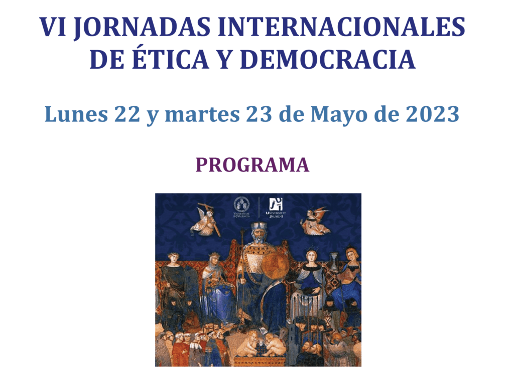 22-23 de Mayo de 2023: VI Jornadas Internacionales organizadas por el alumnado del Máster en Ética y Democracia