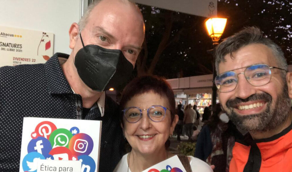 El domingo 24 de octubre, día de la clausura de la Feria del Libro de Valencia, tuve el placer de firmar Ética para influencers en la caseta de la librería Abacus. Me resultó muy interesante conversar con las personas que se interesaban por él. Una profesora quería transmitir su contenido a su alumnado, algunos padres lo querían regalar a sus hijos, y algunos hijos a sus padres. Otros me proponían conferencias para diversos colectivos. También recibí la visita de amigos y amigas que querían felicitarme y llevarse el libro.
