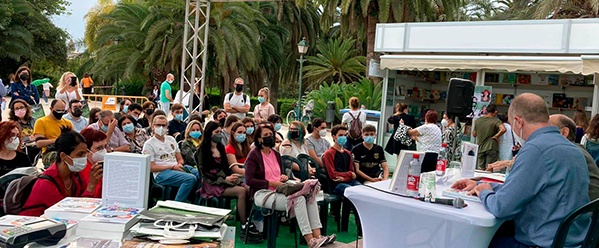 Al acabar el acto, Marcos Montero recordó que yo estaría firmando libros en la caseta de la librería Abacus cooperativa, donde disfruté con los comentarios de las personas que vinieron a hablar conmigo y a pedirme que se lo dedicara.